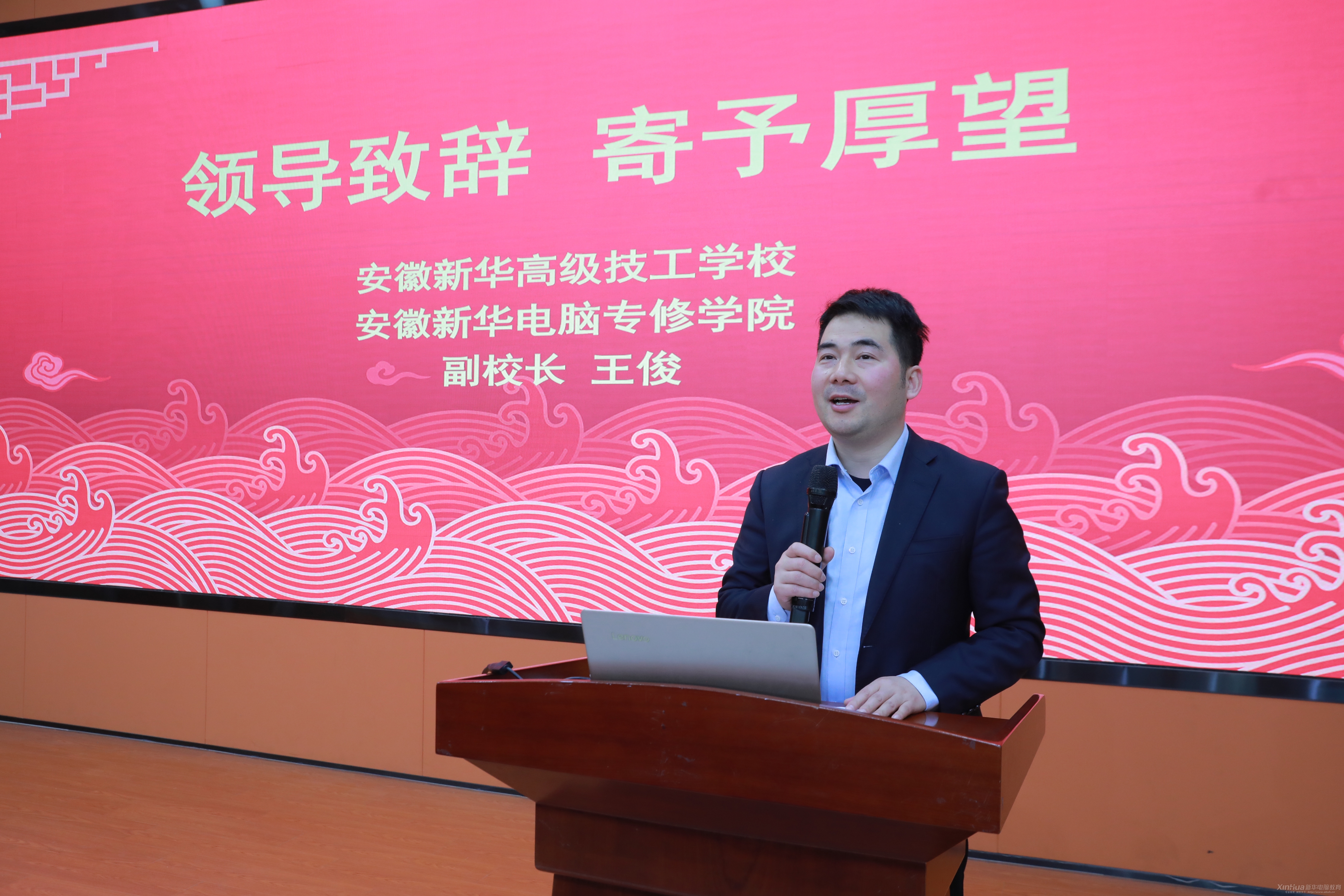 在热烈掌声中,王俊副校长登台致辞。他肯定学子过往努力,剖析单招考试形势,明确冲刺目标,传递学校全力支持备考的决心。殷切嘱托让学子倍感振奋,明晰前进方向,全场再次以热烈掌声致敬这份信任与期许。